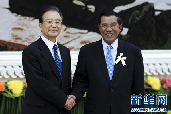 溫家寶表示,明年是兩國建交55周年。雙方要辦好“友好年”活動(dòng),抓緊制訂全面戰(zhàn)略合作伙伴關(guān)系行動(dòng)計(jì)劃。中方將一如既往支持柬埔寨經(jīng)濟(jì)社會(huì)發(fā)展和民生改善,在雙邊和地區(qū)框架下加強(qiáng)務(wù)實(shí)合作,推動(dòng)更多中國企業(yè)赴柬埔寨投資。
