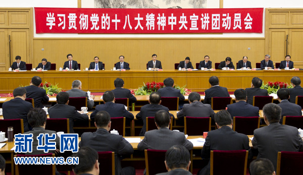 11月22日,學(xué)習(xí)貫徹黨的十八大精神中央宣講團(tuán)動(dòng)員會(huì)在北京召開,中共中央總書記習(xí)近平作出重要批示。中共中央政治局常委、中央書記處書記劉云山出席會(huì)議并講話。新華社記者 黃敬文 攝