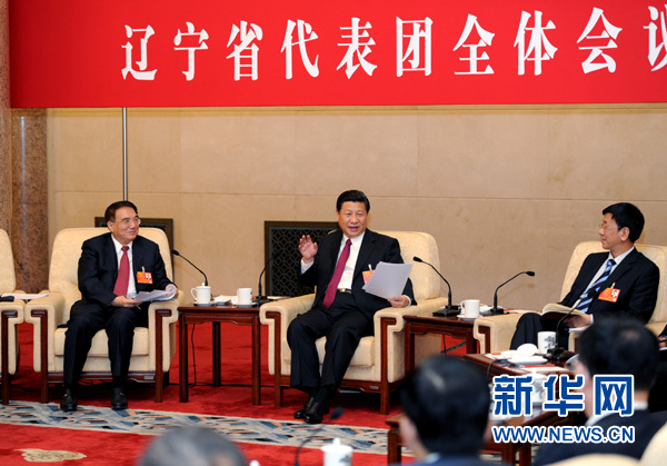 3月6日,中共中央總書記、中共中央軍委主席習(xí)近平參加十二屆全國(guó)人大一次會(huì)議遼寧代表團(tuán)的審議。 新華社記者 謝環(huán)馳 攝