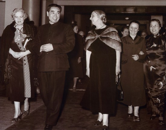 圖為1956年,鄧穎超(右1)和周恩來(lái)同出席國(guó)際民主婦女聯(lián)合會(huì)理事會(huì)的客人在一起。