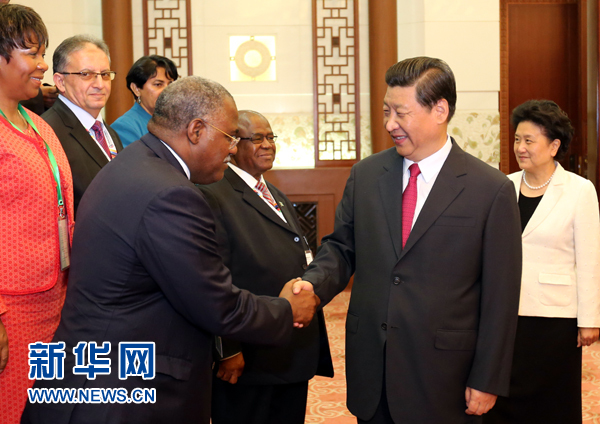 習近平表示,中非友好源遠流長,歷久彌新,經(jīng)受了國際風云變幻的考驗,收獲了比黃金還要寶貴的真情和信任。中非合作論壇成立以來,中非關系進入了新的快速發(fā)展軌道。雙方政治互信進一步提升,務實合作成果豐碩,在國際事務中密切配合協(xié)調,中非新型戰(zhàn)略合作伙伴關系內涵進一步充實。中非是命運共同體,有共同的歷史遭遇、發(fā)展任務和光明前途。中方愿與非洲國家和人民一道,把握難得的歷史機遇,堅持平等互利、合作共贏,更好地維護中非乃至世界人民的共同利益。