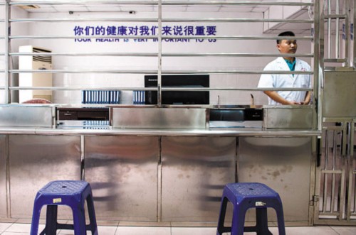 看守所里的醫(yī)務(wù)室,在押人員去看病時(shí),與醫(yī)生需隔一道鐵欄