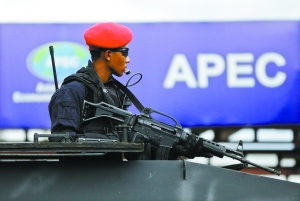 隨著21位成員領(lǐng)導人陸續(xù)抵達,巴厘島當?shù)氐陌脖K揭呀?jīng)提升到最高級別。印尼總統(tǒng)蘇西洛在6日的亞太工商領(lǐng)導人峰會上宣布,印尼已經(jīng)準備做好了峰會的一切準備。