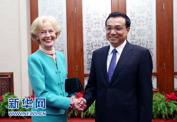 國務(wù)院總理李克強(qiáng)17日下午在人民大會堂會見澳大利亞總督布賴斯。