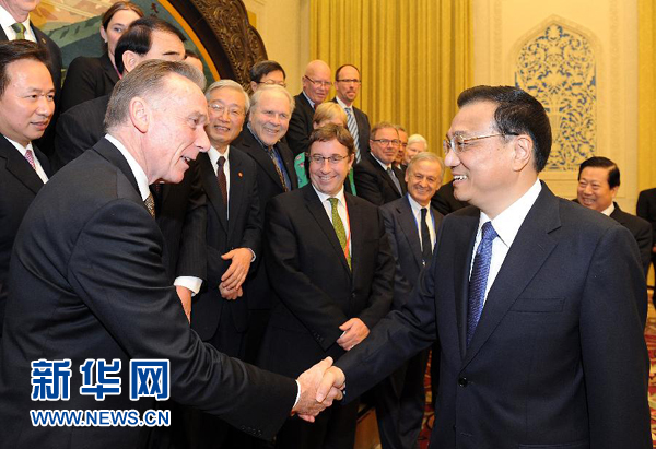 11月14日,國務(wù)院總理李克強在北京人民大會堂會見出席中國環(huán)境與發(fā)展國際合作委員會2013年年會的外方代表并座談。新華社記者劉建生攝