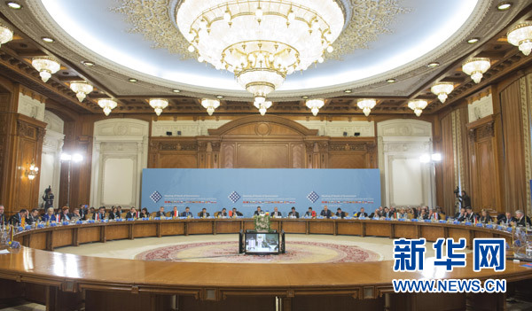 11月26日,中國國務(wù)院總理李克強(qiáng)在羅馬尼亞布加勒斯特出席中國-中東歐國家領(lǐng)導(dǎo)人會(huì)晤并發(fā)表重要講話。 新華社記者李學(xué)仁攝
