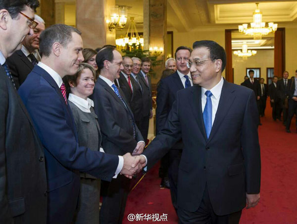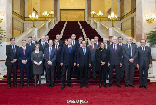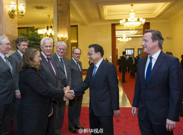 國務院總理李克強2日與英國首相卡梅倫舉行會談后,共同會見了隨同卡梅倫首相訪華的英國企業(yè)家代表。