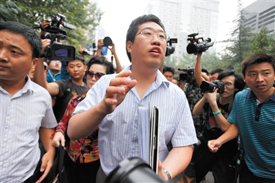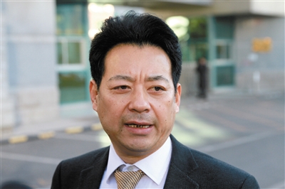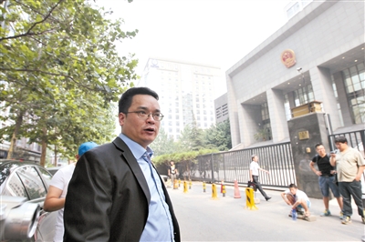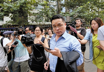 7月22日,海淀法院門(mén)前,李某某家法律顧問(wèn)蘭和接受媒體采訪。當(dāng)天,李某某等人強(qiáng)奸案舉行庭前會(huì)議。新京報(bào)記者王貴彬攝