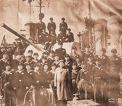 正月初七,也就是公歷2月20日,編隊到達九江。下午2時30分,毛主席終于登上了我們的“洛陽”艦。他走到我們中間,和藹地詢問我們衣服夠不夠穿,飲食習慣不習慣,津貼夠不夠花。軍艦過小孤山時,主席舉起望遠鏡,邊望邊說:“過去這邊的水道很窄,現(xiàn)在變寬了,水道變了,世界也變了!碑斨飨弥奥尻枴迸灥呐潘恐挥1000噸時,他沉思了片刻,對我們說:“將來我們的海軍要有大艦!”一句話說得我們熱血沸騰。