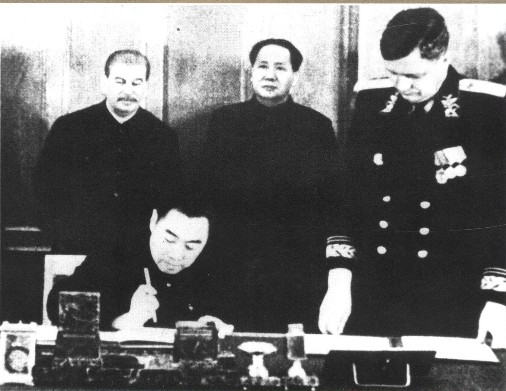 毛澤東和斯大林出席《中蘇友好同盟互助條約》及有關(guān)協(xié)定的簽字儀式