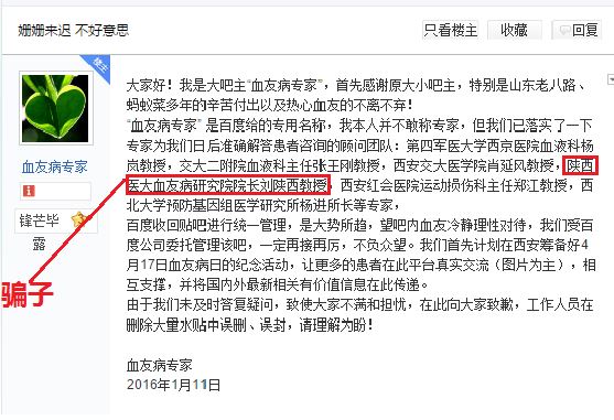 據(jù)網(wǎng)友稱,ID為“血友病專家”的劉陜西已被媒體曝光過,是"花錢"成為吧主并試圖因此獲利,可能將損害病友利益。