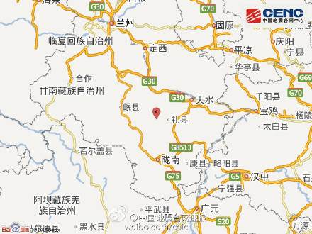 甘肅蘭州、天水、定西、徽縣;四川廣元;寧夏固原等地網(wǎng)友稱有震感。