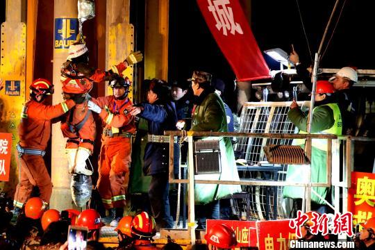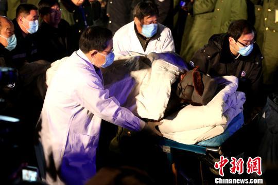 1月29日21:21分,第一名被困礦工獲救升井!×籂摹z