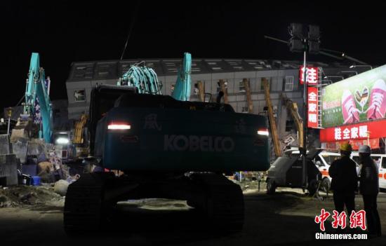 2月7日,農(nóng)歷除夕之夜,臺(tái)灣各支救援隊(duì)伍堅(jiān)持在臺(tái)南維冠大樓倒塌現(xiàn)場(chǎng),徹夜展開(kāi)救援工作。圖為臺(tái)南市長(zhǎng)賴清德決定動(dòng)用多臺(tái)重型機(jī)具進(jìn)場(chǎng),加速救援行動(dòng),與時(shí)間賽跑。中新社記者 劉舒凌 攝