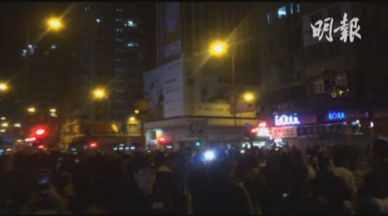 警方一度出示黃旗,要求民眾不要沖擊警方封鎖線。到子夜時(shí)分,警方驅(qū)散在馬路聚集的民眾,再度爆發(fā)沖突,警方一度要施放胡椒噴霧,控制場(chǎng)面。