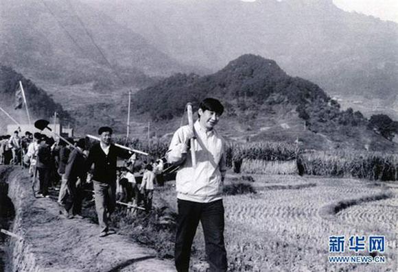 習近平扛著鋤頭參加農(nóng)業(yè)勞動。來源:新華網(wǎng)