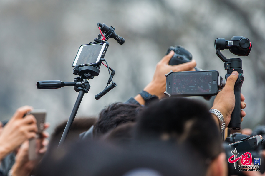 3月3日,中國人民政治協(xié)商會議第十二屆全國委員會第四次會議在北京人民大會堂開幕。步入會場前,各媒體記者紛紛亮出“武器”,各種新科技和新裝備引人注目,成為一道獨特的風(fēng)景線。中國網(wǎng)記者 鄭亮 攝