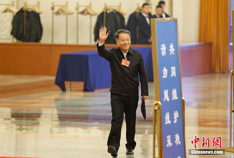會前,交通運(yùn)輸部部長楊傳堂經(jīng)過人民大會堂“部長通道”時同記者打招呼。 中新社記者 杜洋 攝