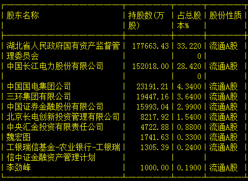 湖北能源前十大流通股股東