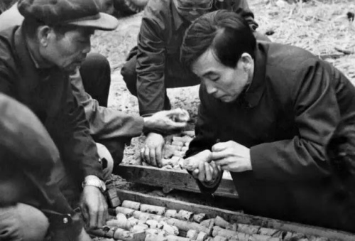 1985年3月,在湖南柿竹園礦區(qū)考察時(shí)觀察巖芯。圖據(jù)地質(zhì)出版社