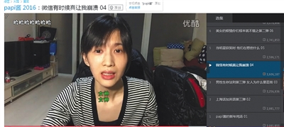 Papi醬視頻下架前在優(yōu)酷的訂閱人數(shù)為102.4萬(wàn),約有16條熱門視頻。