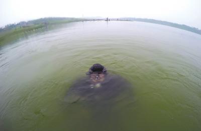“水深3米多,水下水草縱橫,有不少淤泥沉積,還有少許網(wǎng)狀物,能見度在3米左右!边^了幾分鐘后,水下特警浮出水面,向指揮員匯報情況。
