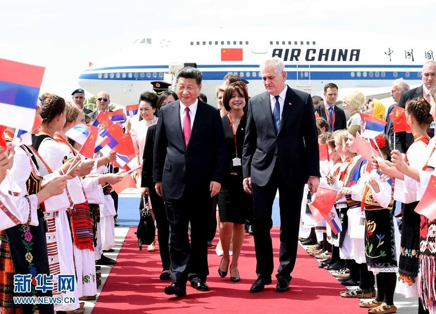 6月17日,國家主席習(xí)近平乘專機抵達貝爾格萊德,開始對塞爾維亞共和國進行國事訪問。習(xí)近平和夫人彭麗媛在機場受到塞爾維亞總統(tǒng)尼科利奇夫婦的熱情迎接。 新華社記者 饒愛民 攝 圖片來源:新華網(wǎng)