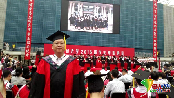 鄭長忠應(yīng)邀參加復(fù)旦大學(xué)2016屆學(xué)生畢業(yè)典禮。本人供圖