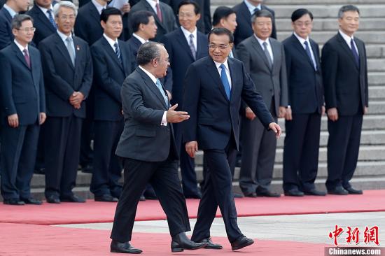 7月6日,中國國務(wù)院總理李克強(qiáng)在北京人民大會(huì)堂東門外廣場(chǎng)舉行儀式,歡迎來華進(jìn)行正式訪問的巴布亞新幾內(nèi)亞總理奧尼爾。中新社記者 盛佳鵬 攝