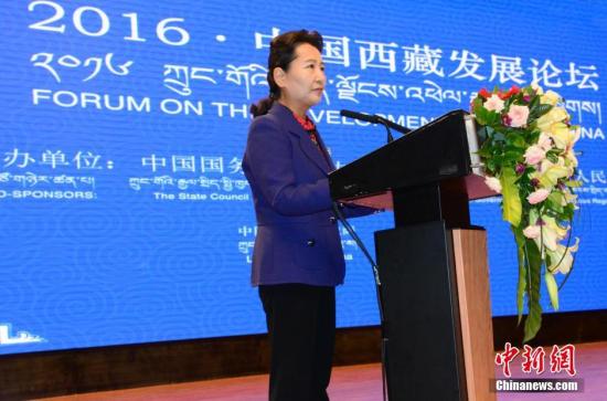 由中國(guó)國(guó)務(wù)院新聞辦公室和西藏自治區(qū)政府共同主辦、拉薩市政府承辦的“2016·中國(guó)西藏發(fā)展論壇”,7月7日在西藏自治區(qū)首府拉薩開幕。圖為中共中央宣傳部副部長(zhǎng)、中國(guó)國(guó)務(wù)院新聞辦公室副主任崔玉英主持。陳韜彬 攝