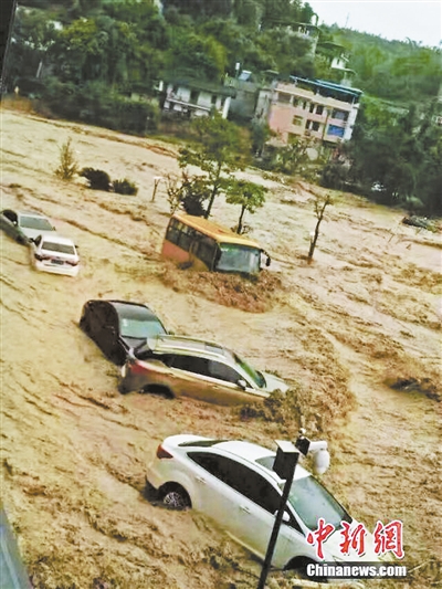 汽車被洪流裹挾著沖走