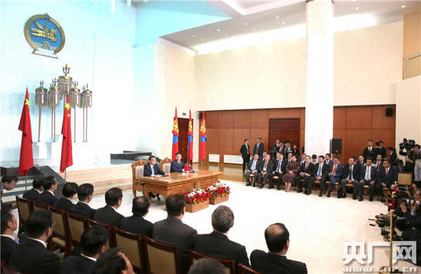 央廣網(wǎng)烏蘭巴托7月14日消息(記者馬喆)7月14日,李克強與額爾登巴特在烏蘭巴托國家宮共見記者。雙方表示愿保持兩國關系發(fā)展正確方向,尊重彼此核心利益和重大關切。雙方同意加快推進中方“一帶一路”與蒙方“草原之路”戰(zhàn)略對接,希望加強畜牧業(yè)加工和住房建筑等領域的合作。