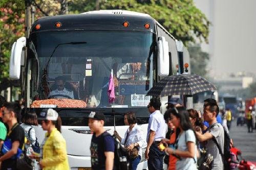 圖說:2016年2月11日,來自中國(guó)的團(tuán)隊(duì)游客走在泰國(guó)曼谷大皇宮附近。 新華社發(fā)