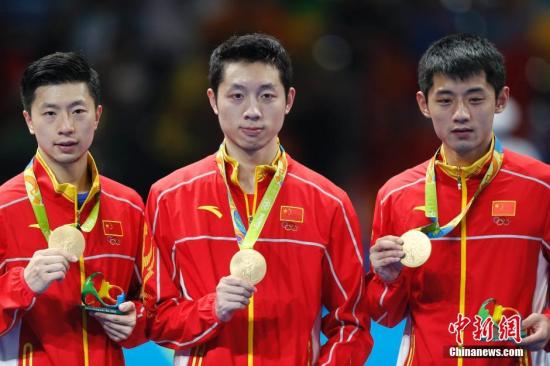 當?shù)貢r間8月17日,2016里約奧運男子乒乓球團體賽決賽舉行,中國隊最終以總比分3:1的成績戰(zhàn)勝日本隊獲得冠軍。中新網(wǎng)記者 盛佳鵬 攝