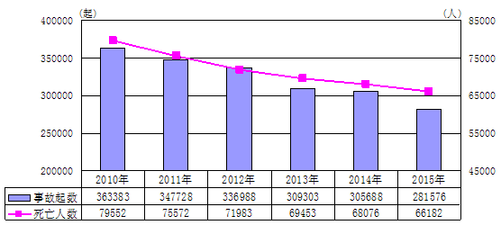 統(tǒng)計顯示,“十二五”期間,事故總量由2010年的363383起、79552人,下降到2015年的281576起、66182人,累計下降22.5%和16.8%;較大事故由2010年的1732起、6870人,下降到2015年的1016起、3820人,累計下降41.3%和44.4%;重特大事故由2010年的85起、1440人,下降到2015年的38起、768人,累計下降55.3%和46.7%。