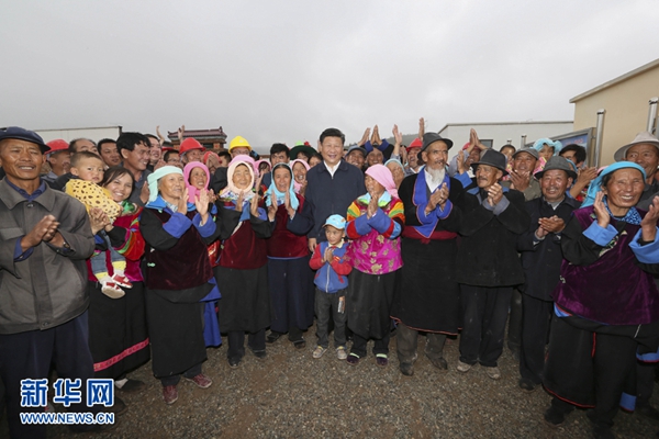 這是8月23日上午,習(xí)近平總書記在海東市互助土族自治縣五十鎮(zhèn)班彥村考察時(shí)同村民合影。 新華社記者 蘭紅光 攝