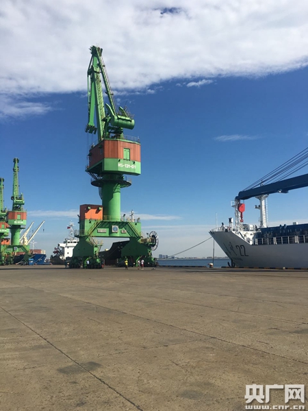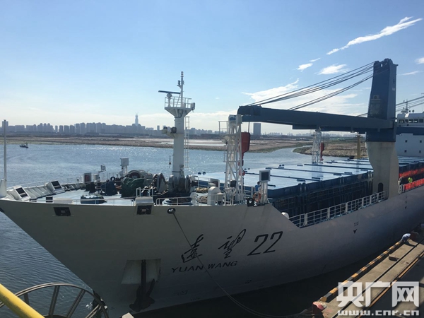 天津港口的遠(yuǎn)望22號(hào)(央廣網(wǎng)記者張棉棉攝)