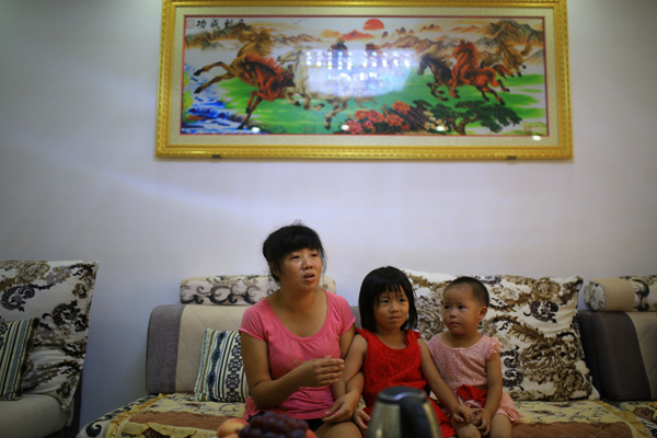 王檢秀和兩女兒在新家。陳若冰 攝于都縣在縣城工業(yè)園、中心鎮(zhèn)、中心村,通過“政府主導、市場運作、梯度安置”的辦法,建成了上歐工業(yè)新區(qū)移民搬遷安置示范區(qū)(即思源社區(qū))、嶺背鎮(zhèn)中心鎮(zhèn)區(qū)移民搬遷扶貧新型社區(qū)和羅坳大橋移民新村等一批山區(qū)群眾“進城進園 ”整體移民搬遷扶貧新型社區(qū)。