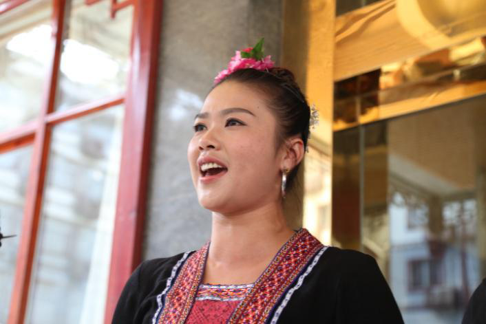 侗族少女正在演唱侗族歡迎曲《侗鄉(xiāng)情》 圖/中國青年報·中青在線記者 仵楠