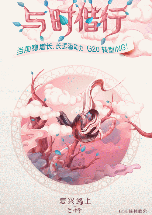 第一幅,“與時(shí)偕行”。作為2016年G20杭州峰會主席國,中國將積極推動G20“破繭新生”,從短期的危機(jī)應(yīng)對平臺向長期治理平臺轉(zhuǎn)型,實(shí)現(xiàn)轉(zhuǎn)型和發(fā)展。