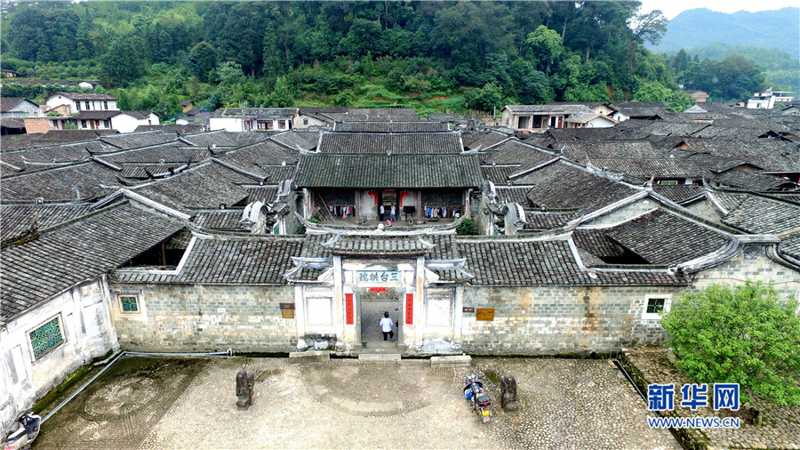 培田古村落始建于元朝時期,明末清初進入鼎盛時期。現(xiàn)有三十幢高堂華屋、二十一座吳氏宗祠、六處書院、兩道跨街牌坊,四座庵廟道觀,和一條千米長街組成的古名居群落,總面積約七萬多平方米。圖為培田村航拍圖。