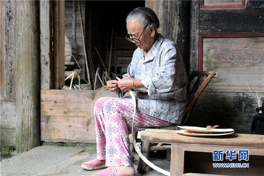 培田村在原生態(tài)保護和商業(yè)化開發(fā)之間,找到了自己的“平衡點”。村民們的生活并未因旅游開發(fā)而有太多影響,依然保有原汁原味的客家人的生活場景。圖為一名老人在制作搖扇。