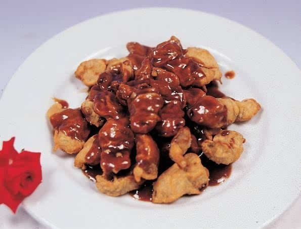 泗鄉(xiāng)豆腐皮,薄如蟬衣,油潤光亮,軟而韌,拉力大,落水不糊,聞名遐邇,被譽為“金衣”。干炸響鈴便是以這一著名特產(chǎn)為主料,包裹豬里脊肉末制成。