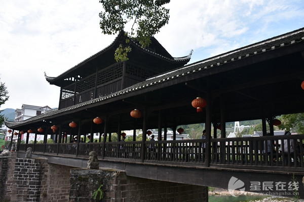 踏入這片紅色的土壤,記者立即被一座古樸的橋梁所吸引,黑瓦木梁、騎廊橫跨,顯得肅穆而厚重。牌匾上“賀龍橋”三個大字赫然醒目,宣示著這里便是開國元帥賀龍的故鄉(xiāng)了。當(dāng)?shù)卮迕窠榻B,當(dāng)年,賀龍刀劈芭茅溪鹽稅局以后,便是在這座橋頭成立桑植討袁民軍,被推為總指揮。