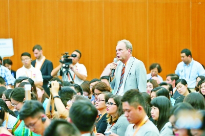 外國記者在新聞發(fā)布會上提問。本報記者 周官正攝/光明圖片