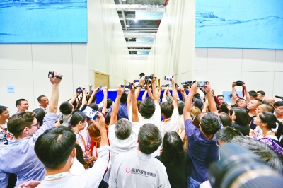 圖為:媒體記者們紛紛舉起相機拍攝想要的畫面。本報記者 周官正攝/光明圖片