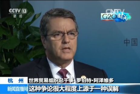 在杭州G20峰會期間,本臺記者專訪了世界貿(mào)易組織總干事羅伯特·阿澤維多。針對當下貿(mào)易增長失速、貿(mào)易保護主義抬頭,阿澤維多表示對此次峰會充滿期待,希望各國領(lǐng)導人能在本次G20峰會上就貿(mào)易達成多方面共識,而這將對促進全球貿(mào)易增長起到長期引領(lǐng)作用。