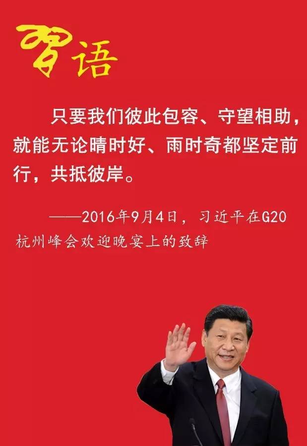 在杭州峰會上的閉幕辭中,習近平指出,在我們共同努力下,二十國集團領(lǐng)導人杭州峰會取得了豐碩成果,畫上了圓滿句號。相信此次會議將成為一個嶄新起點,讓二十國集團從杭州再出發(fā)。