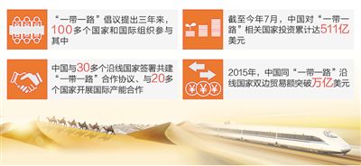 “一帶一路”倡議提出三年來,100多個(gè)國(guó)家和國(guó)際組織參與其中,中國(guó)與30多個(gè)沿線國(guó)家簽署共建“一帶一路”合作協(xié)議、與20多個(gè)國(guó)家開展國(guó)際產(chǎn)能合作,以亞投行、絲路基金為代表的金融合作不斷深化,一批有影響力的標(biāo)志性項(xiàng)目逐步落地。截至今年7月,中國(guó)對(duì)“一帶一路”相關(guān)國(guó)家的投資累計(jì)達(dá)511億美元。2015年,中國(guó)同“一帶一路”沿線國(guó)家雙邊貿(mào)易額突破萬億美元。從無到有、由點(diǎn)及面,“一帶一路”海陸統(tǒng)籌、東西互濟(jì)、面向全球的開放新格局漸次鋪開,建設(shè)速度和成果超出預(yù)期。
