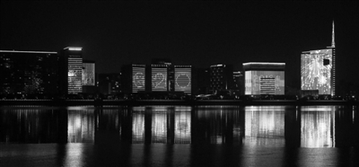 杭州錢塘江岸邊建筑的主題燈光秀